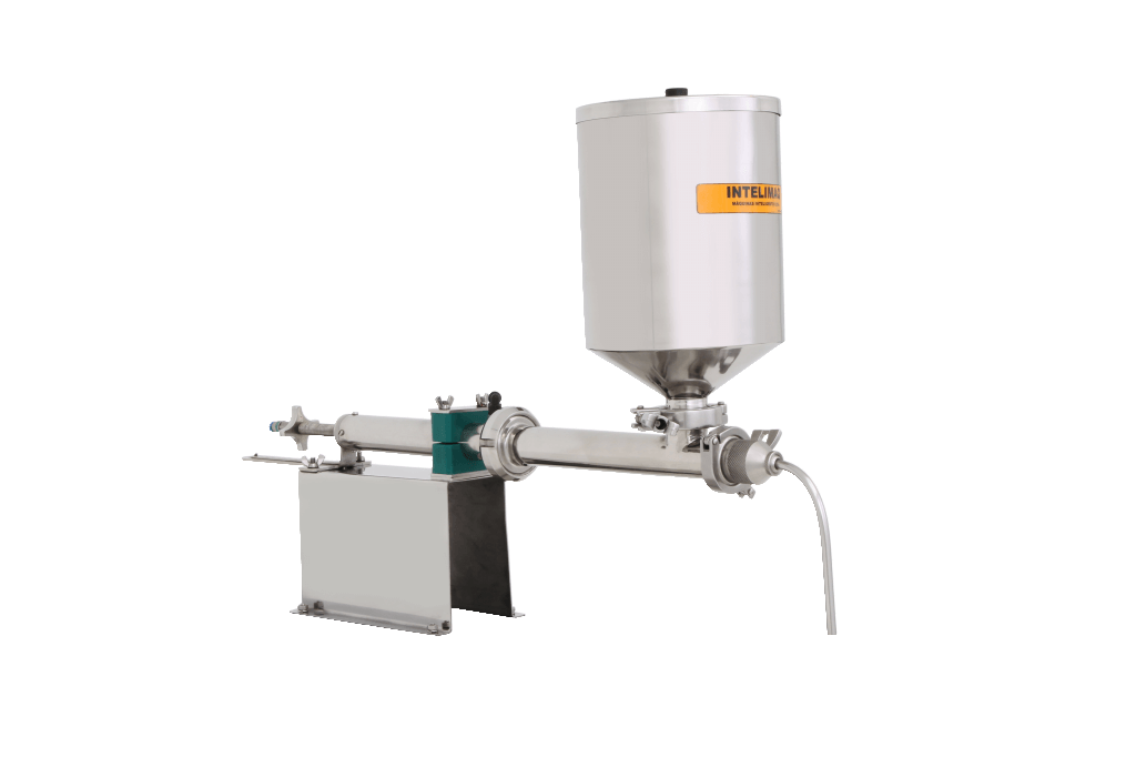 O pistão, ao retroceder, suga o produto através da válvula do silo preenchendo o seu volume interno.